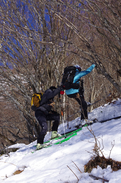Objectif en vue. La neige parcourue jusqu'à maintenant n'est pas des plus folichone. Tantôt croutée, tantôt gelée, tantôt poudreuse. En conclusion, bien piégeuse.